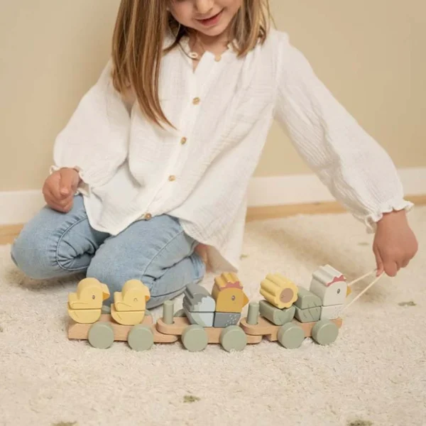 LITTLE DUTCH. Ξύλινο τρενάκι με άσκηση λεπτής κίνησης κοτοπουλάκι Little Farm FSC