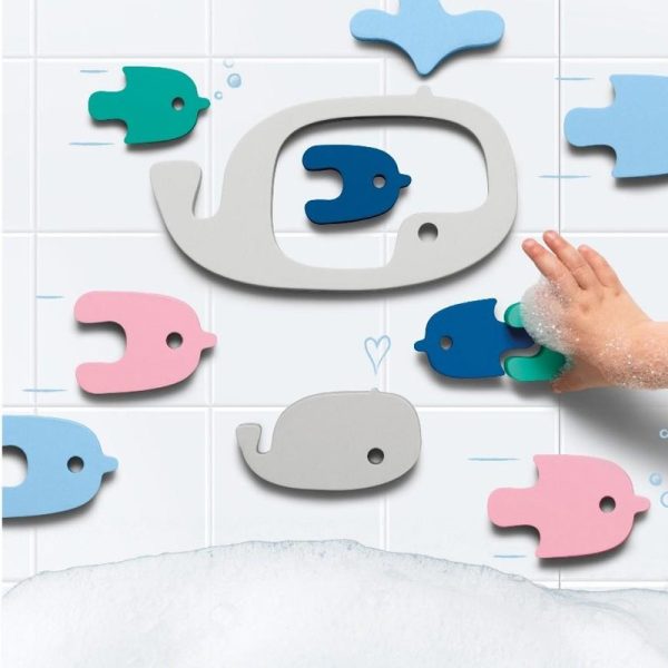Τρισδιάστατο παζλ για το μπάνιο, από τη νέα σειρά Quutopia της εταιρίας Quut. Τα κομμάτια του απεικονίζουν χρωματιστές φάλαινες, με τις οποίες τα μικρά παιδιά διασκεδάζουν παίζοντας κατά τη διάρκεια του μπάνιου! Παράλληλα βελτιώνουν τις κινητικές τους δεξιότητες, συνδυάζοντας διαφορετικά σχήματα και χρώματα και δημιουργώντας υπέροχες ιστορίες.