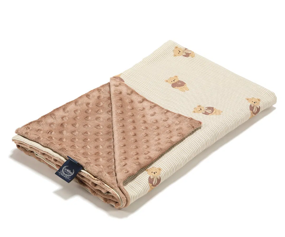 Η παιδική λεπτή  κουβέρτα διπλής όψης (100 cm x 80 cm) της La Millou είναι ιδανική για τις πιο ζεστές και γλυκές αγκαλιές.