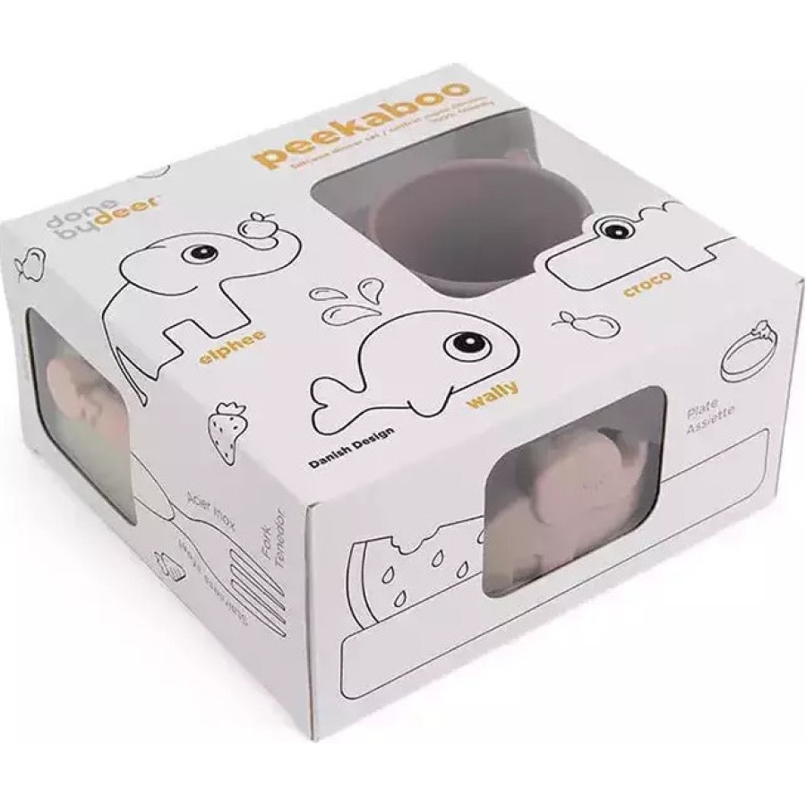 Το σετ δείπνου Peekaboo έχει σχεδιαστεί για να προκαλεί την περιέργεια των μικρών που τρώνε. Τα Elphee, Wally και Croco κρυφοκοιτάζουν από τα σκεύη – κάνοντας το γεύμα μια επιπλέον διασκεδαστική ώρα της ημέρας. Ένα σετ δείπνου σε τέλειο μέγεθος για τα πρώτα γεύματα και για να μάθετε να τρέφεστε μόνοι σας