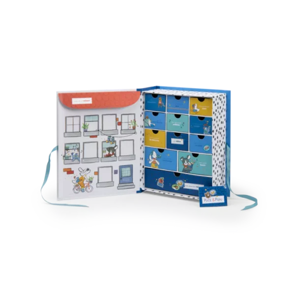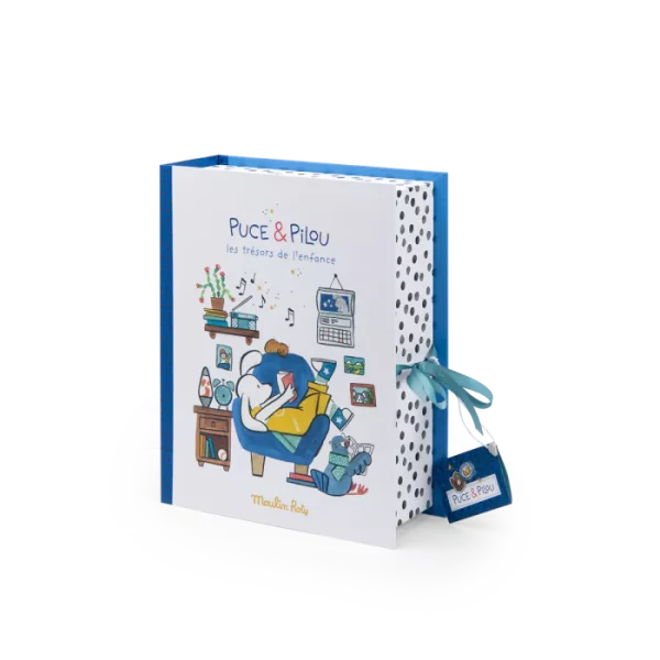 Αυτό το άκαμπτο κουτί είναι ιδανικό για να κρατάτε προσεκτικά όλους τους πολύτιμους θησαυρούς της παιδικής ηλικίας! Με εικονογραφημένα συρτάρια και χαρούμενες εικόνες των αγαπημένων χαρακτήρων Puce και Pilou τόσο μέσα όσο και έξω, το κουτί γίνεται μια όμορφη αποθήκευση για τις αναμνήσεις και τα μικρά αντικείμενα του παιδιού. Κλείνει με γραβάτες για επιπλέον ασφάλεια και στυλ.