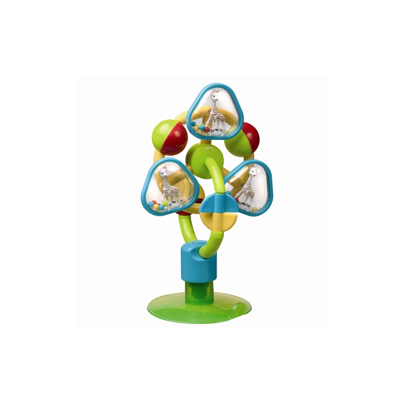 Ένα παιχνίδι δραστηριοτήτων με βεντούζα ιδιαίτερα ισχυρή και πλατιά για να κρατάει το μωρό σας απασχολημένο στην καρέκλα του την ώρα που ετοιμάζετε το φαγητό του! Παιχνίδι ανακάλυψης: λαμπερά και χαρούμενα χρώματα ερεθίζουν οπτικά το μωρό σας, ενώ μπορεί να στριφογυρνά και να αγγίζει τον τροχό, τις μπάλες και τα τριγωνάκια με μέσα τη Σόφι την καμηλοπάρδαλη. Καθώς το μωρό απασχολείται ακούγονται χαρούμενοι ήχοι και κουδουνίσματα. Βεντουζάρει εύκολα σε οποιαδήποτε λεία επιφάνεια.