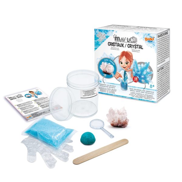 Ένα κιτ για την καλλιέργεια ενός μεγάλου, πολύχρωμου κρυστάλλου εύκολα. Περιλαμβάνει την κρυσταλλική σκόνη, το καλλιέργεια ποτήρι ζέσεως και εικονογραφημένες οδηγίες χρώματος. Ηλικία 8+ Το Buki ΚΡΥΣΤΑΛΟΙ LAB είναι ένα εκπαιδευτικό παιχνίδι της εταιρείας Buki France, που επιτρέπει στα παιδιά να καλλιεργήσουν τους δικούς τους κρυστάλλους. Είναι ένα επιστημονικό σετ που ενθαρρύνει τη μάθηση μέσω του πειραματισμού.